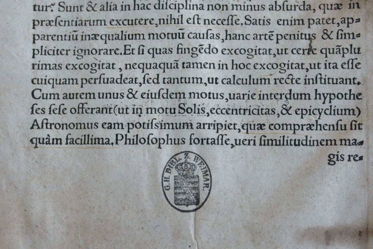 Die weltweit erhaltenen Exemplare von »De Revolutionibus« sind ein hervorragendes Beispiel dafür, welchen Beitrag Lektürespuren und Kommentare der Leser zur Erforschung eines Werkes, zum geistigen Umfeld seiner Entstehung und seiner Rezeption leisten können. Sie ermöglichten die Verbreitung zusätzlicher Informationen und erlauben Einblicke in frühere wissenschaftliche Netzwerke. Rund die Hälfte der bekannten Exemplare ist annotiert, teils von bedeutenden Gelehrten, wie z. B. Tycho Brahe. Viele wurden von Lehrern an ihre Schüler oder andere Gelehrte weitergegeben. Auch das Weimarer Exemplar weist Randnotizen aus dem späten 16. Jahrhundert auf, jedoch keinen Namenseintrag seines Vorbesitzers.